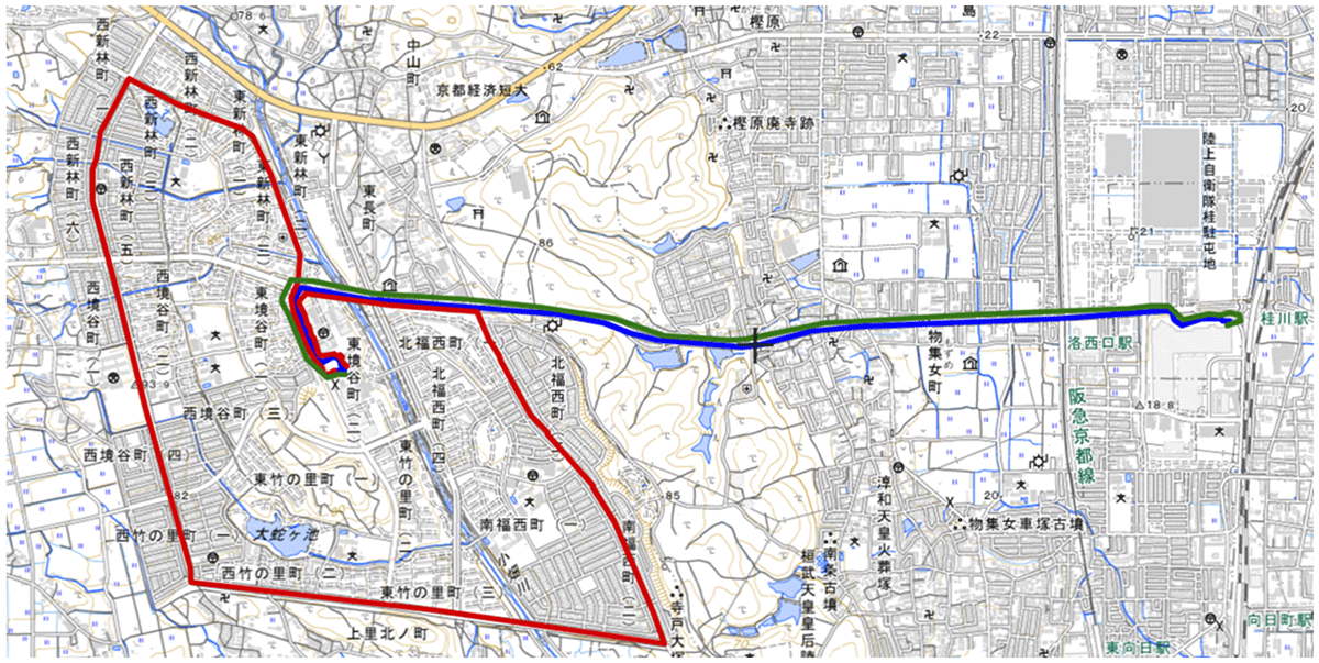 | 実証場所 | ●洛西ニュータウン周回 1周約6.9km/自動運転レベル2 ●洛西バスターミナル-JR桂川駅前 片道約3.8km/手動運転(次年度自動運転予定) → 全長約14.5km |