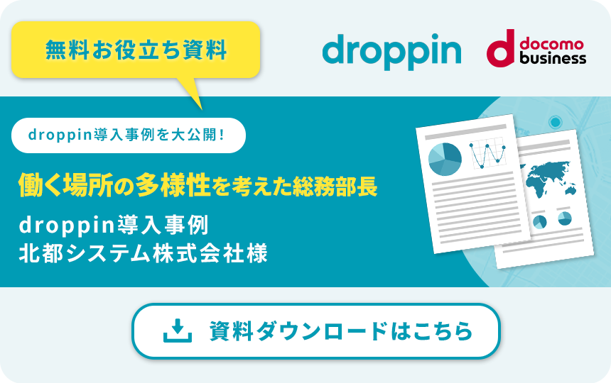 シェアオフィスではなく、使いたい時に使いたいだけ使う「ドロップイン」のワークスペースを探している方もいるでしょう。一時的な利用が可能なワークスペースの検索や予約をしたい方は、ぜひdroppinをご利用ください。