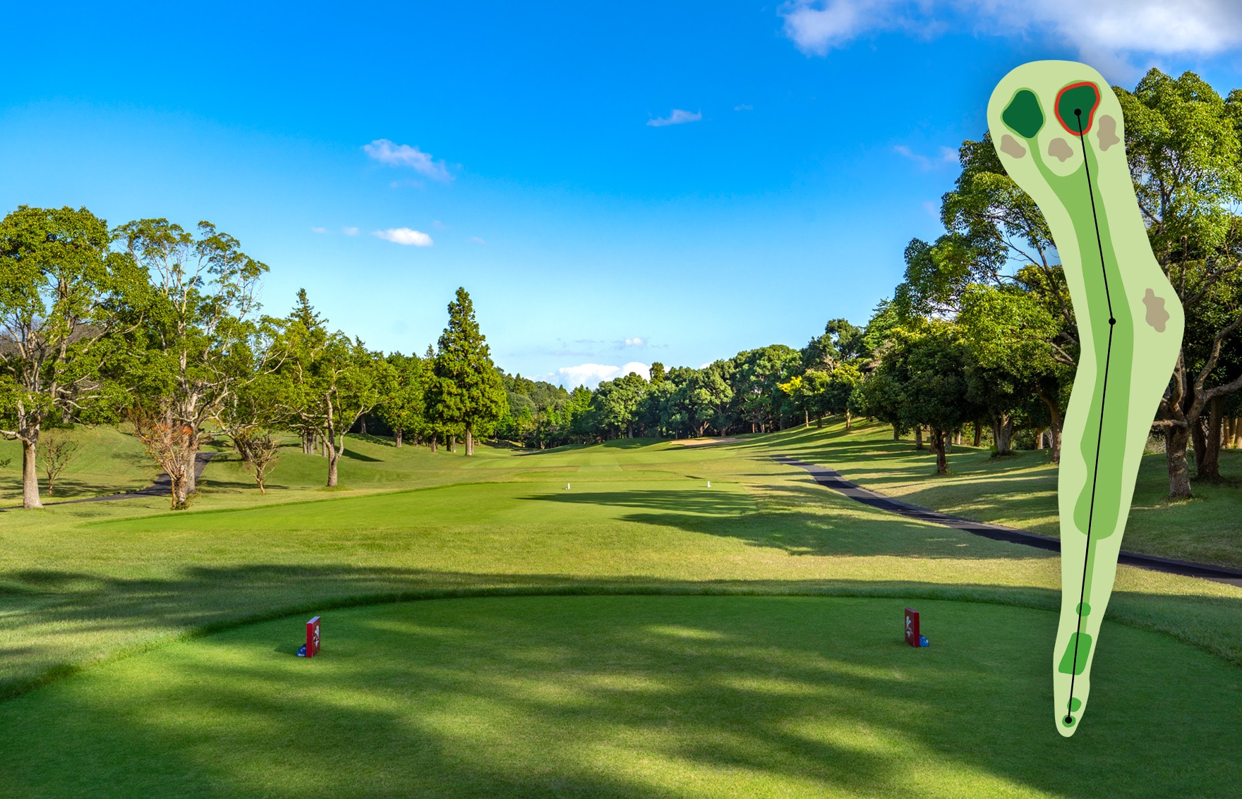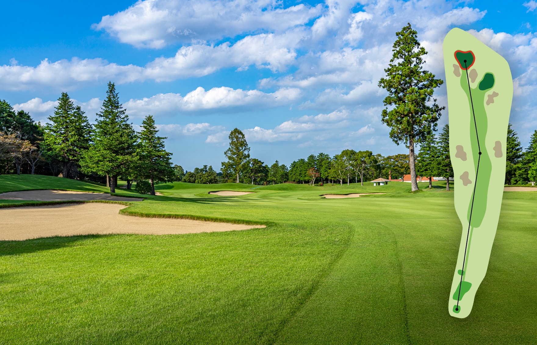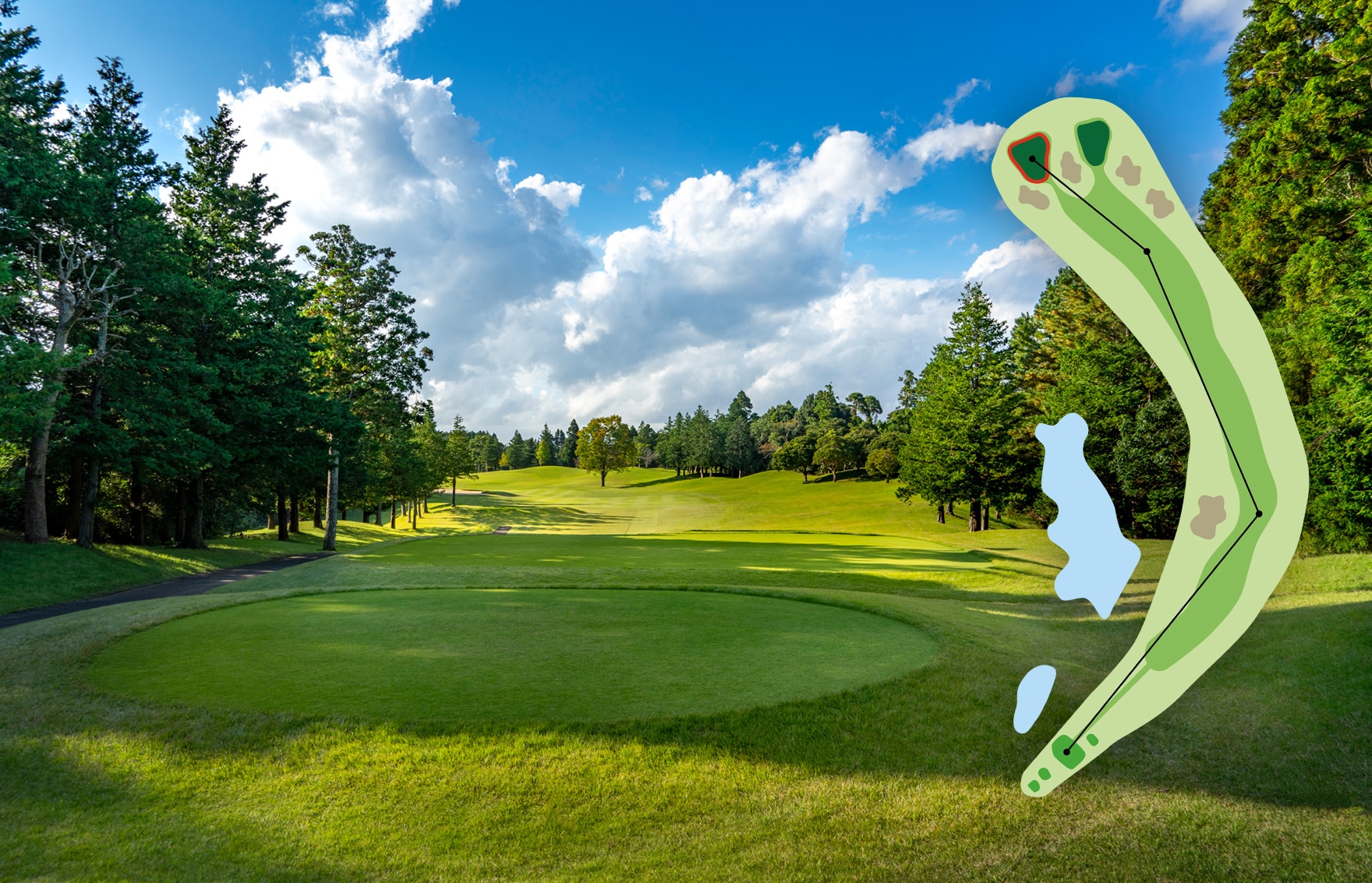 オーソドックスなホール。手堅くパーを狙いたい。