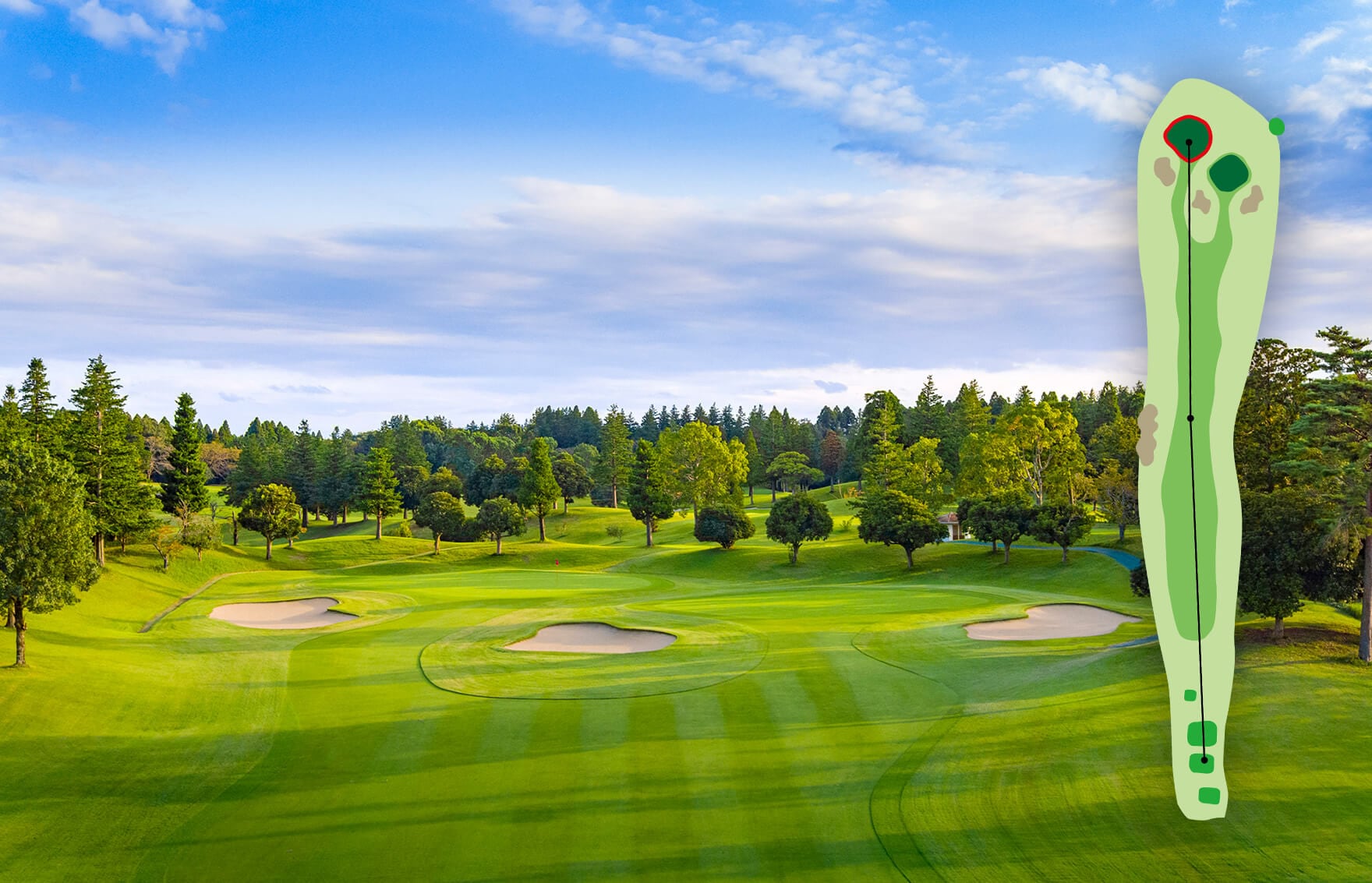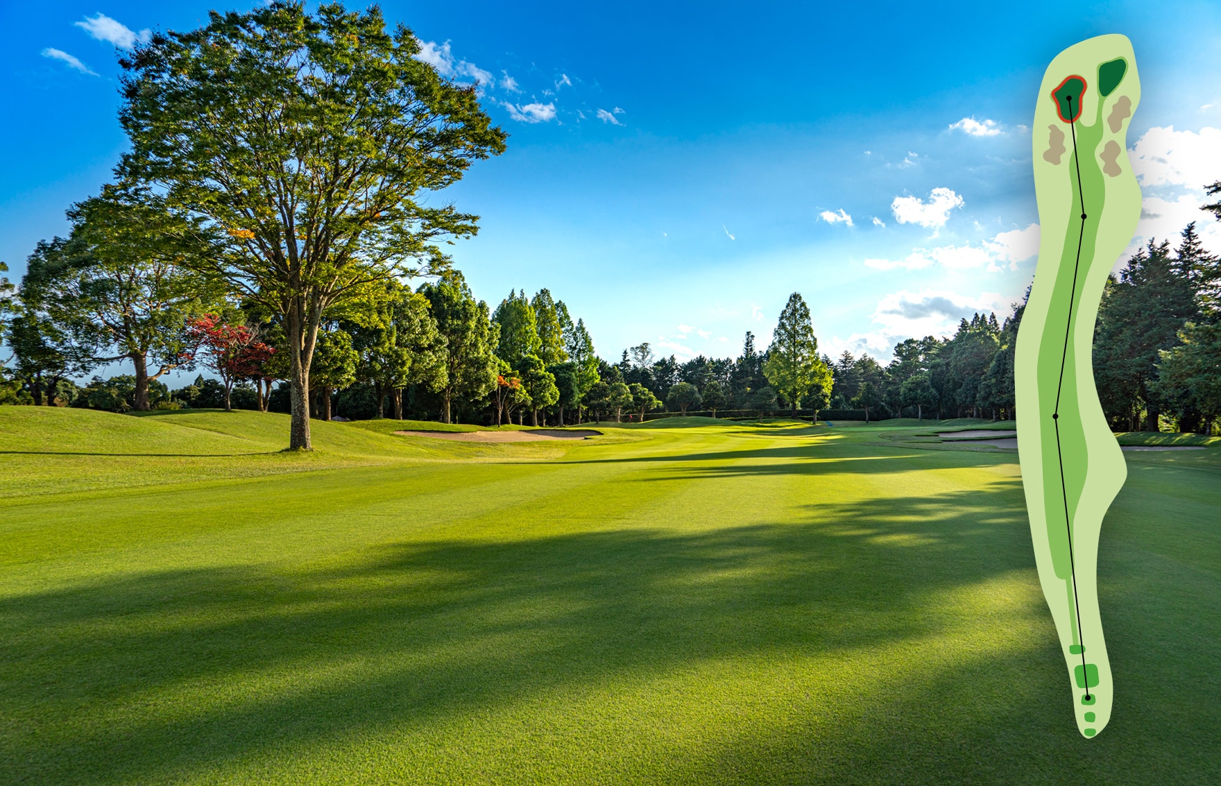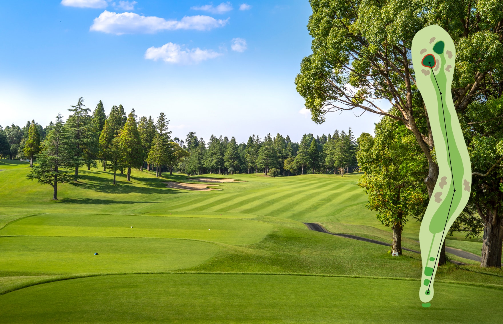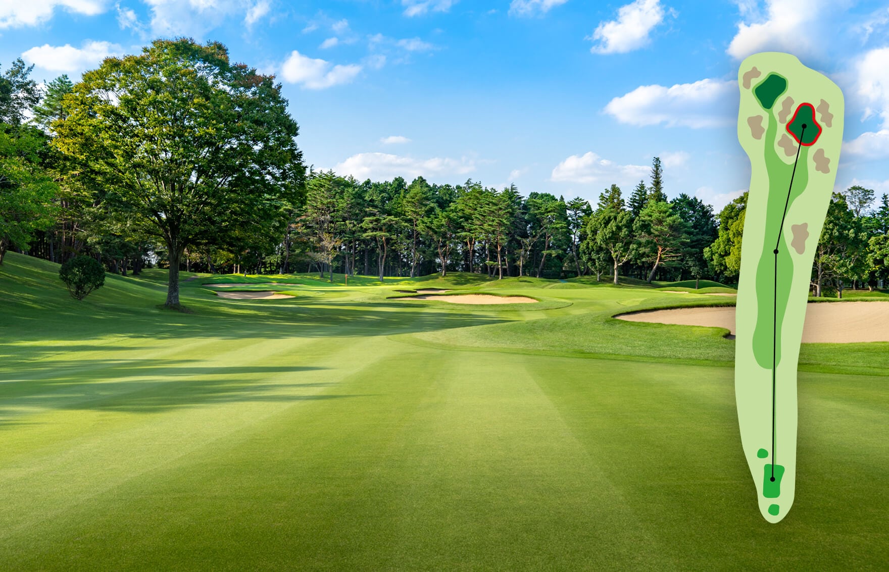 オーソドックスなホール。手堅くパーを狙いたい。