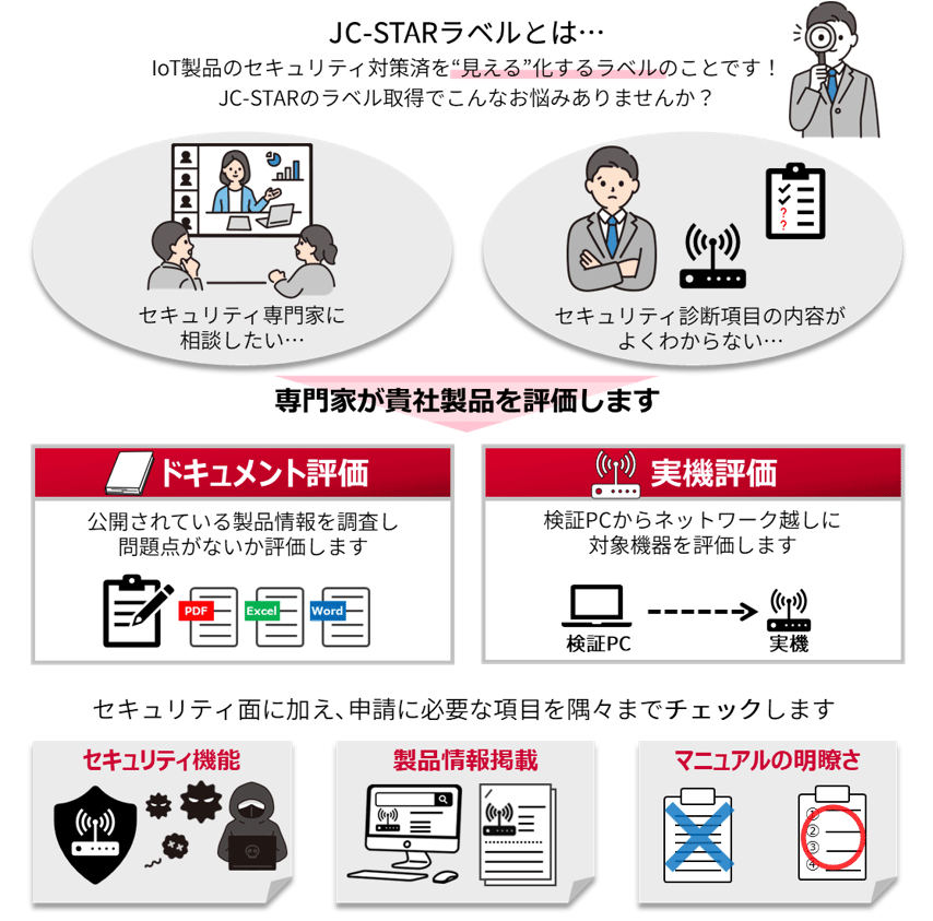 NTTドコモビジネスは、JC-STAR制度の★1取得を目指す企業向けにJC-STARラベル取得アシストの提供を開始します。JC-STAR検証事業者である株式会社NTTデータ先端技術の知見と評価フレームワークを活用し、円滑にJC-STARの適合ラベルを取得できるよう申請に必要な試験や項目の調査を支援します。