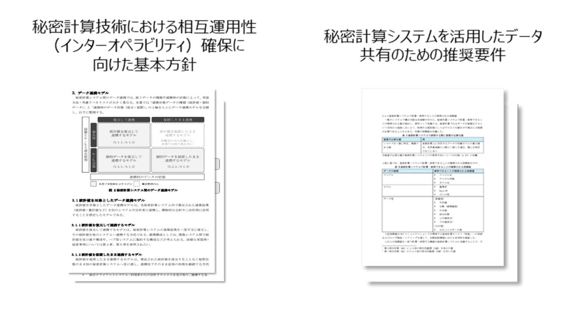 また、本ガイドラインの別紙として「秘密計算技術における相互運用性(インターオペラビリティ)確保に向けた基本方針」および「秘密計算システムを活用したデータ共有のための推奨要件」を作成しました。