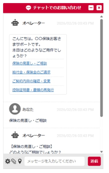 - チャットで伝えた内容がそのままオペレーターにも引き継がれ、お客さまの説明の手間やストレスを低減します。