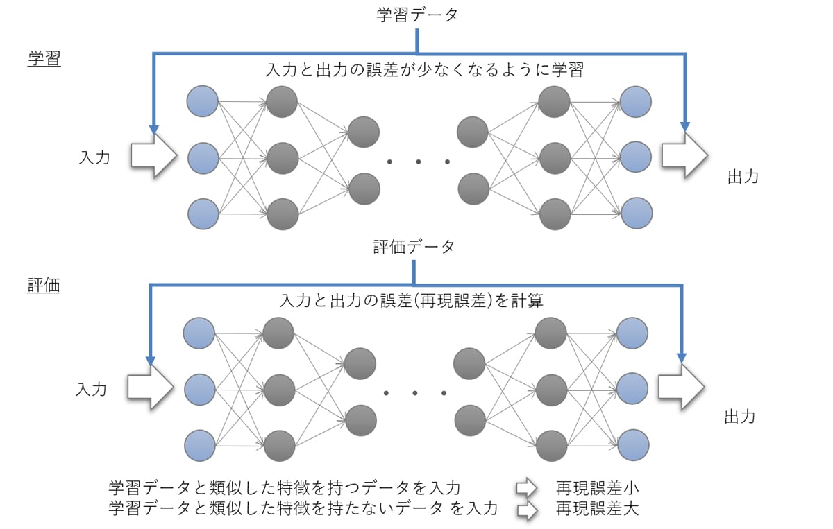 ※3:機械学習におけるアルゴリズムの一つ。入力したデータを圧縮し、同じデータに復元されるように学習する過程でデータの特徴量を抽出することができます。詳細は【別紙1】をご参照ください。