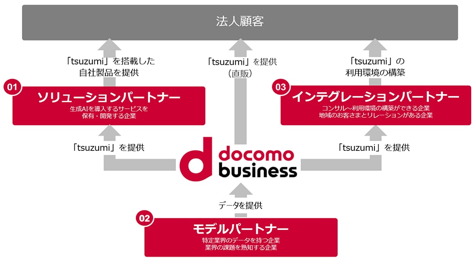 ドコモグループの法人事業ブランド「ドコモビジネス」を展開するNTTコミュニケーションズ株式会社(以下 NTT Com)は、日本電信電話株式会社(以下 NTT)提供の大規模言語モデル(LLM※1)「tsuzumi※2」のサービスへの組込みや、業界・業務に特化したAIモデル開発を進めるため、「tsuzumiパートナープログラム」を通してパートナーの募集を2024年5月29日より開始します。