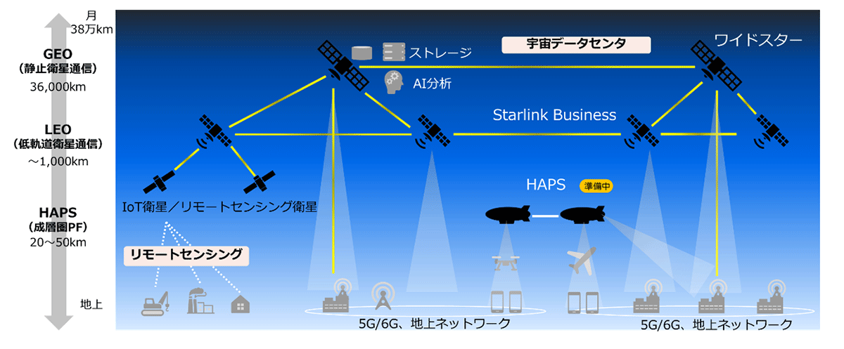 さらに今後は成層圏プラットフォーム※7「HAPS」を活用したサービス提供や、地球観測事業者向けの衛星間通信(光データリレーサービス※8)の提供、観測衛星で撮影されたデータを活用したサービス拡充などを予定しています。