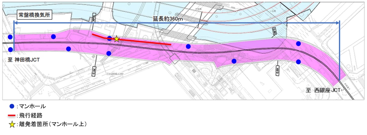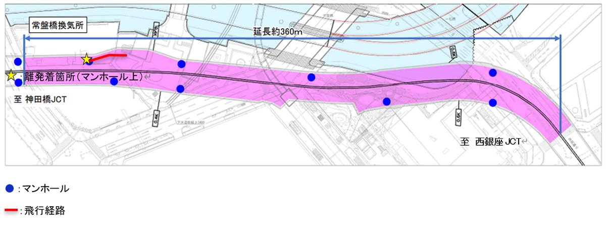 首都高速道路株式会社(本社:東京都千代田区、代表取締役社長:寺山 徹)、首都高技術株式会社(本社:東京都港区、代表取締役社長:加古 聡一郎)、株式会社JDRONE(本社:東京都新宿区、代表取締役社長:大橋 卓也)、KDDIスマートドローン株式会社(本社:東京都千代田区、代表取締役社長:博野 雅文)、NTTドコモビジネス株式会社(本社:東京都千代田区、代表取締役社長:小島 克重)は、狭小(閉鎖空間)で電波環境が悪く通信機器の使用が制限された空間でのドローンを活用した構造物点検及び災害時の被害状況把握を目的として、首都高速道路八重洲線のトンネル換気ダクト内を対象に2月9日(月)、2月12日(木)に実証実験を実施しました。