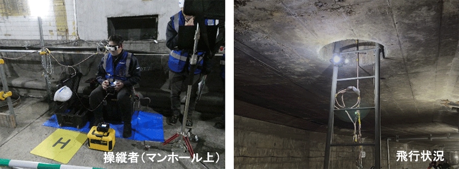 上記の検証結果より、災害時や特殊な環境下で作業員が内部に進入できない場合でも、マンホール開口部などの狭所から安全かつ迅速に点検できる手法として、マイクロドローンが有効であることが確認できた。