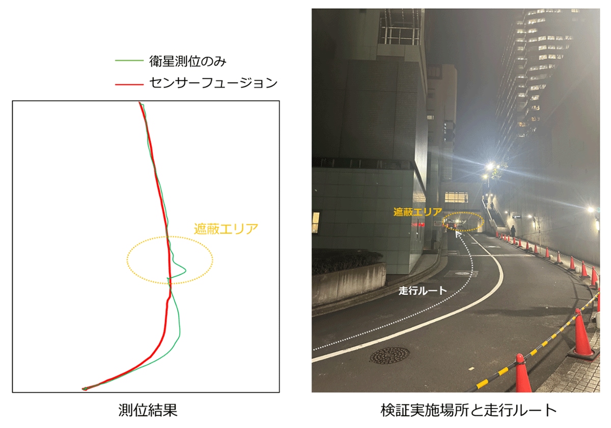 遮蔽環境下でのセンサーフュージョンによる測位精度の乱れ改善検証