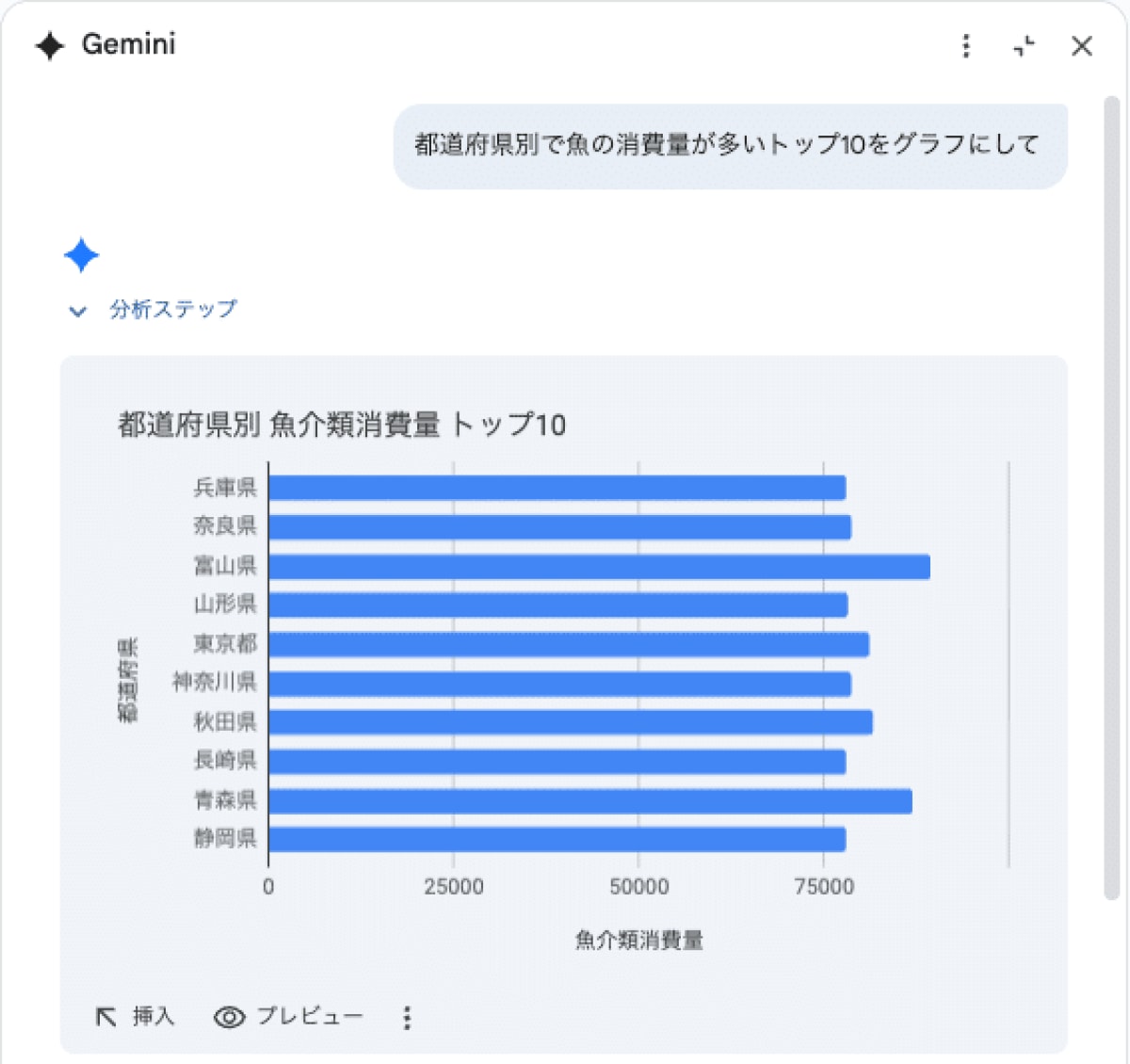 Geminiなら、自然言語で話しかけるだけで、まるでデータと会話するように分析ができてしまいます。