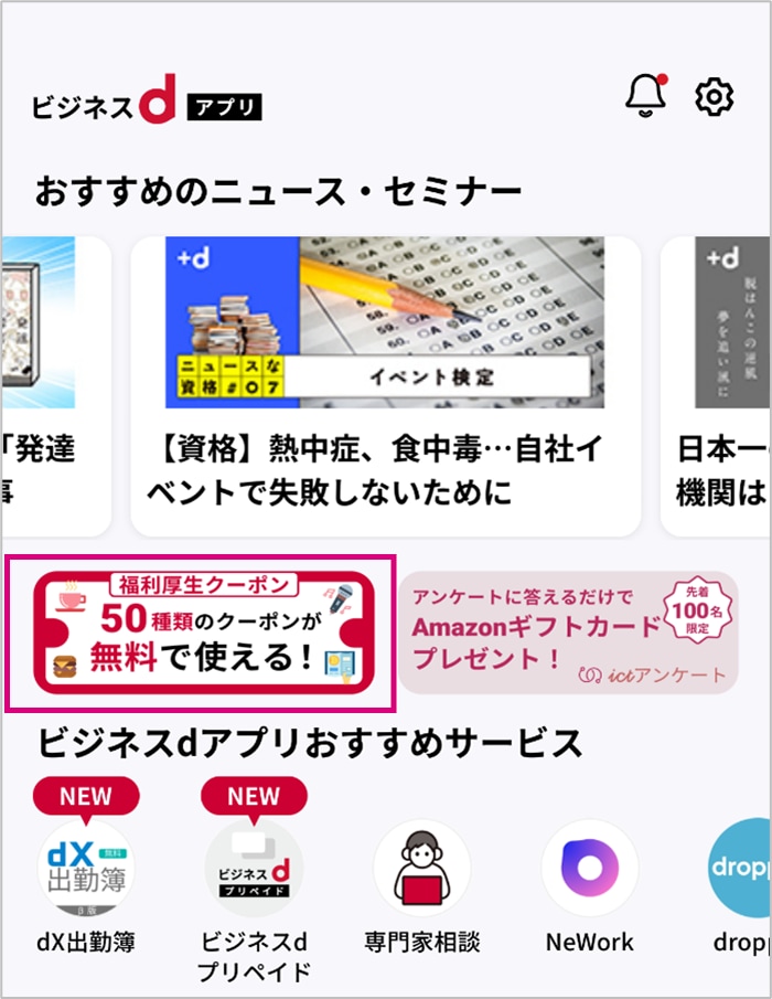※ビジネスdアプリのiOS版では一部クーポンが掲載されておりません。
