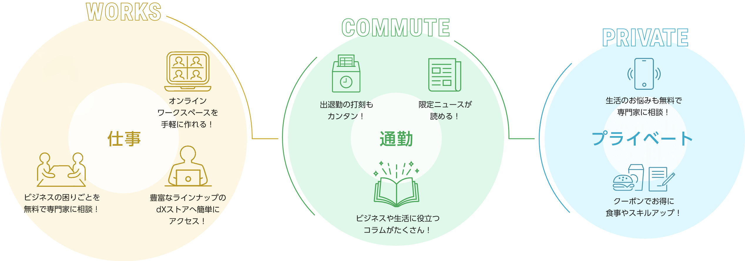 仕事中・プライベートどちらにも使えるお得な特典や、業務効率化につながるサービスを
