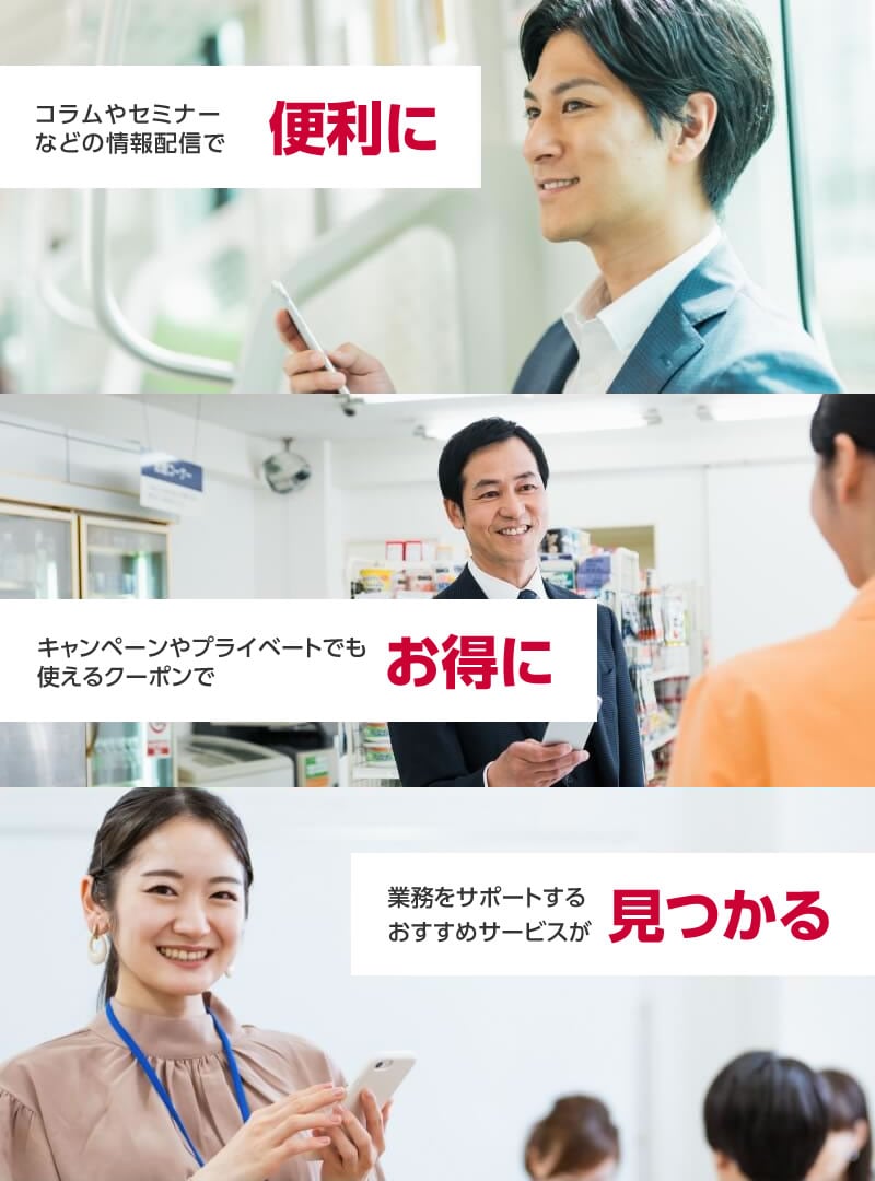 様々なコンテンツを利用できる法人向け無料アプリです。