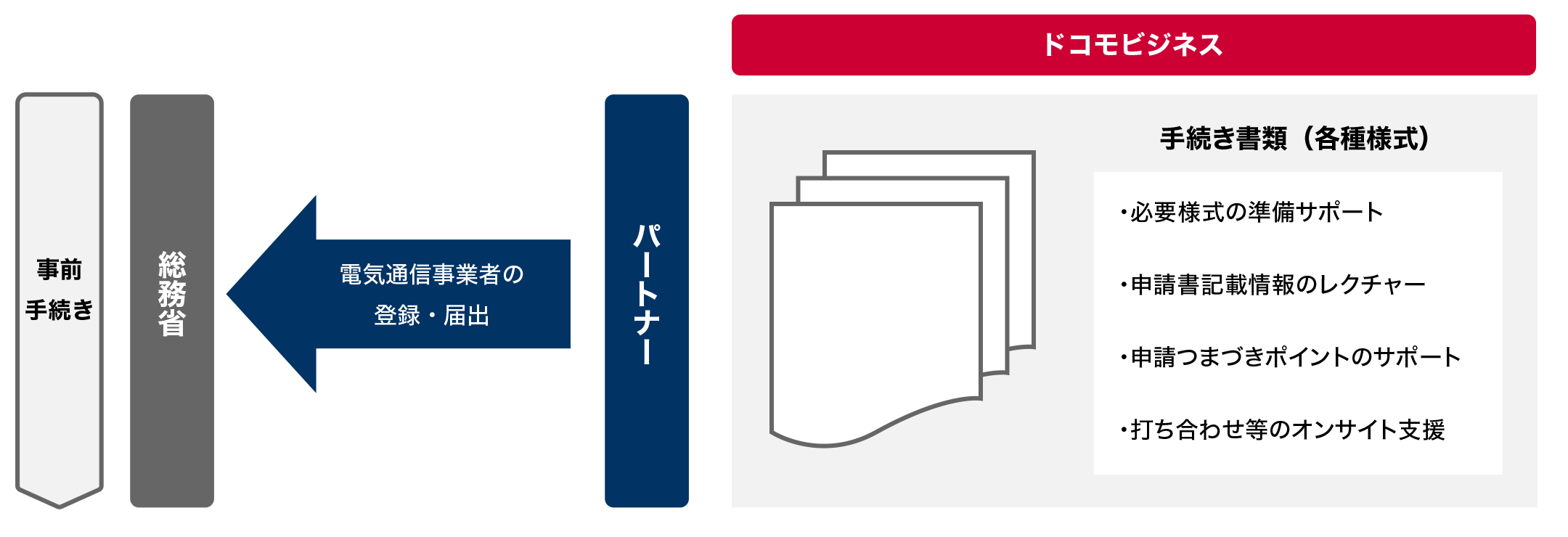 - 法人格を有し、ドコモビジネスとして契約・取引を実施するうえで一定の信用調査に適合していること