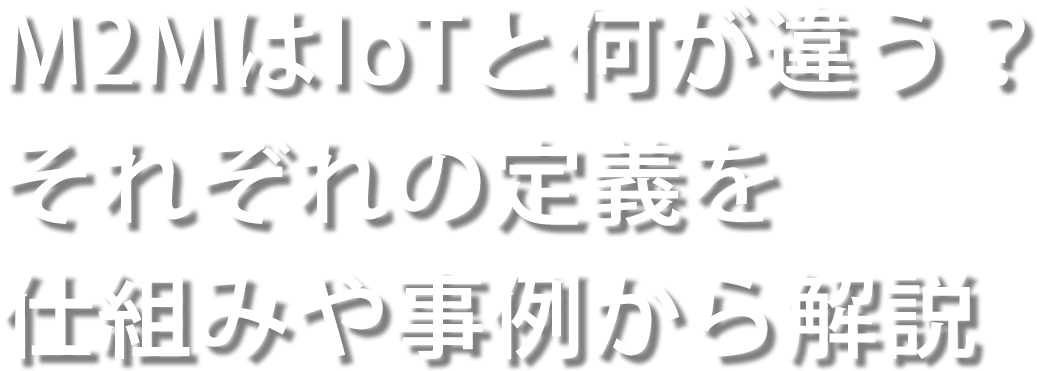 現在、M2Mは、IoTに含まれる技術として位置づけられています。どちらも、機器同士が人を介さずに通信を行う点では共通しています。しかし、インターネットに必ずしも接続する必要はないM2Mに対して、IoTではインターネットに接続することが前提になっているのが最も大きな違いです。