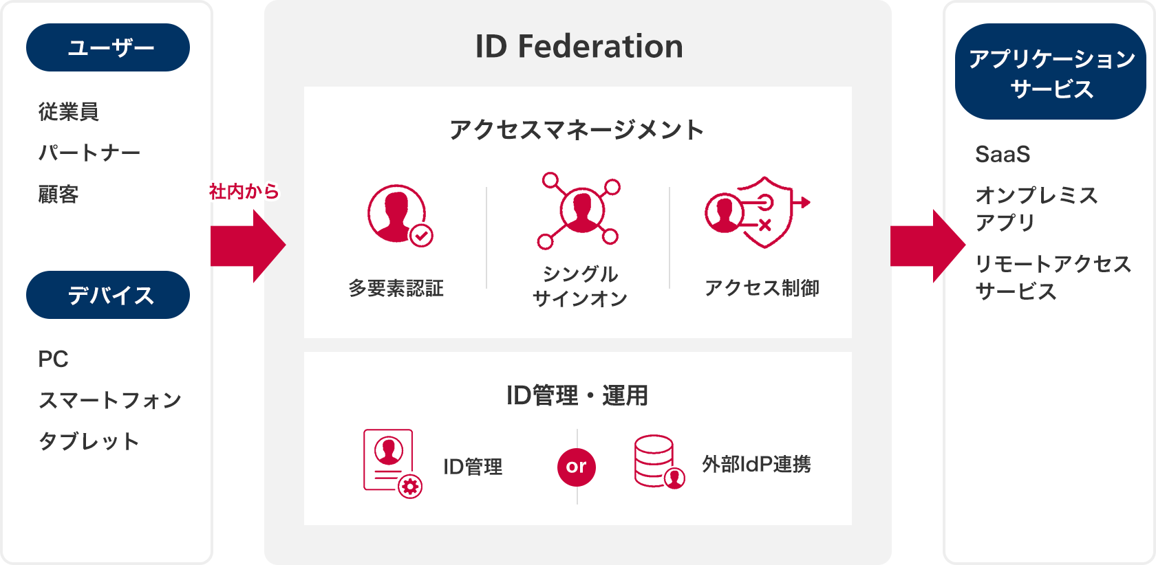 ID Federationは、豊富なIDセキュリティのラインナップを取りそろえることで、企業の多様なIT環境に寄り添い、サイバーセキュリティの危険にさらされる可能性を低減します。