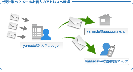 お客さまメールアドレス宛に届いたメールを、ご希望のメールアドレスに転送することができます。