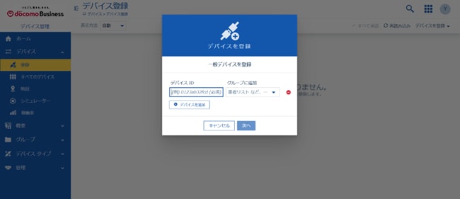 2) デバイスIDにNTC-227のデバイスIDを入れます。NTC-227のWeb UIから確認できます。