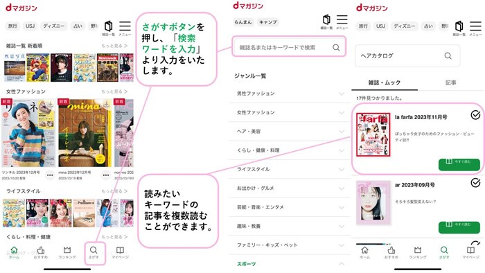 - dマガジン個人版とdマガジン for Biz(dマガジン法人版)では、一部機能および掲載誌が異なります。