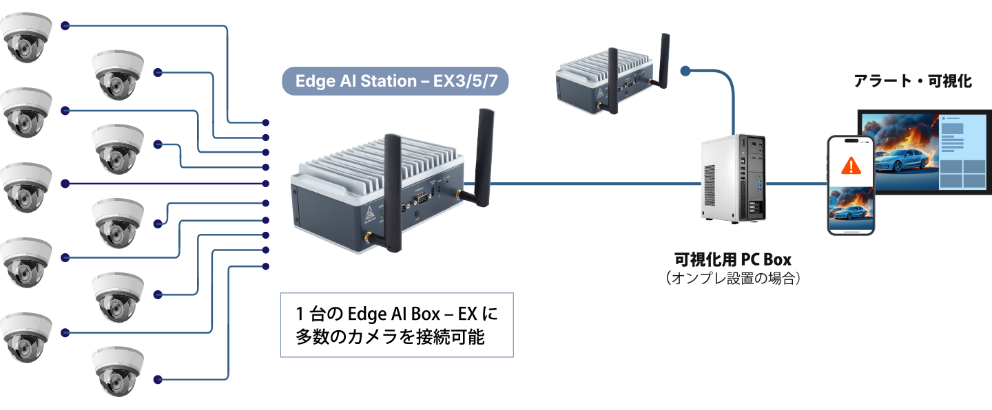 - Edge AI Box – EX シリーズ上で動作し、様々な映像AIアプリケーションの実装が可能
