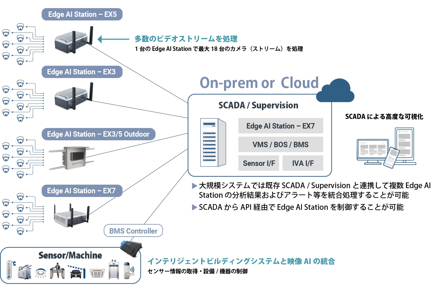 従来の堅牢性に加え複数のカメラ映像と複数のAIタスクを処理、オンプレミスへも柔軟に適用でき、あらゆる業界のニーズ・ユースケースに応えるソリューションです。