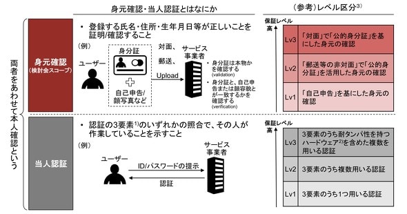 オンラインサービスの増加にともない、本人確認の重要性が高まっている。ここでいう本人確認は、そのお客さまが実在するかを公的身分証により確認する「身元確認」に、IDパスワードや生体認証などによる「当人認証」が組み合わさったものだ。