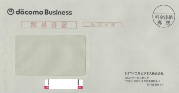 ▼下記の窓あき封筒にて送付します。