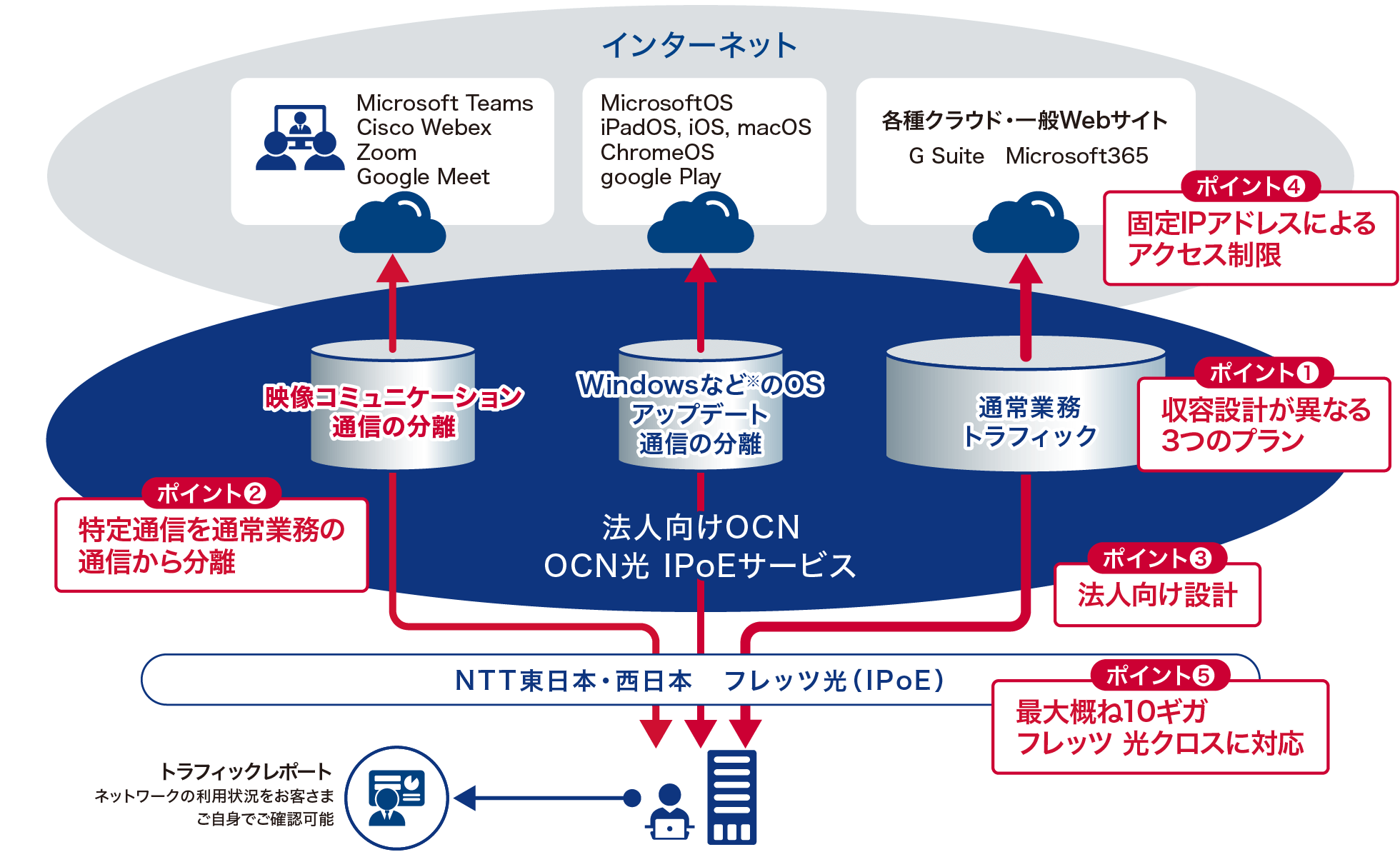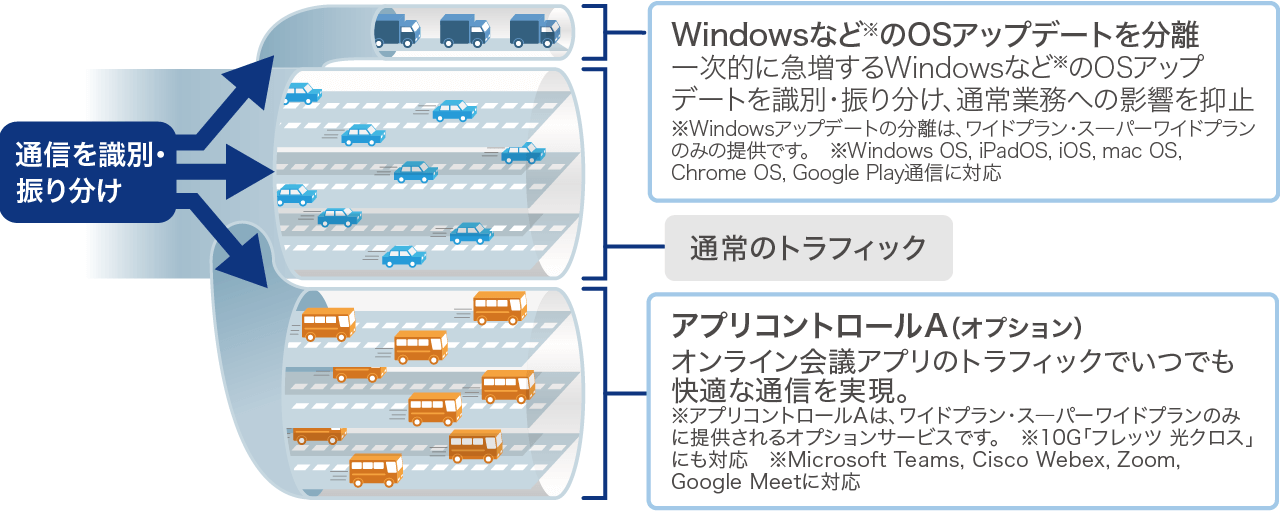 個人向けインターネット通信のトラフィックを論理的に分離し安定した通信を確保