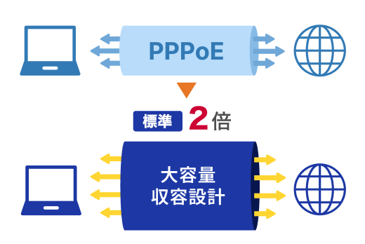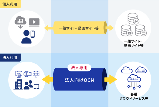 個人の動画・音声利用との通信混雑を避けるために、個人向けインターネット通信のトラフィックを、論理的に分離しています。