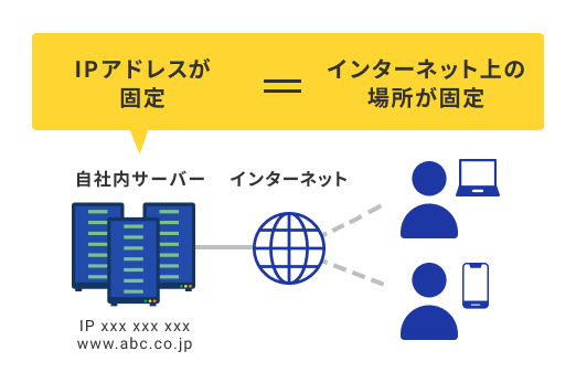 ※固定IP:IPアドレスが変わらない。特定のIPアドレスからのアクセスだけを許可するなど、セキュリティ面の強化に活用。