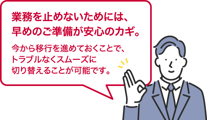 引き続き業務でインターネットをご利用いただくには、新しいサービスへのお申し込みが必要です。