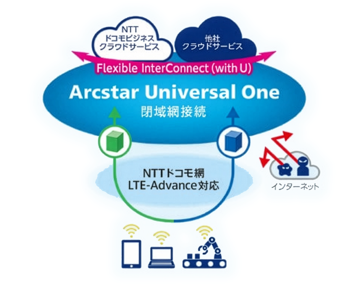Arcstar Universal One モバイルは、モバイル回線からそのまま閉域VPNへ直接接続できるサービスです。