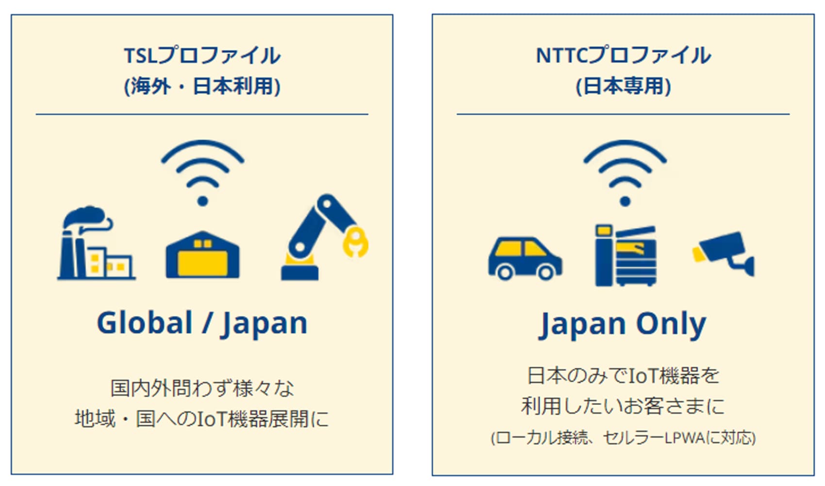 - 海外/日本それぞれに強みをもつ2種類の通信プロファイルをご用意。利用地域によって最適な通信プロファイル選択が可能。