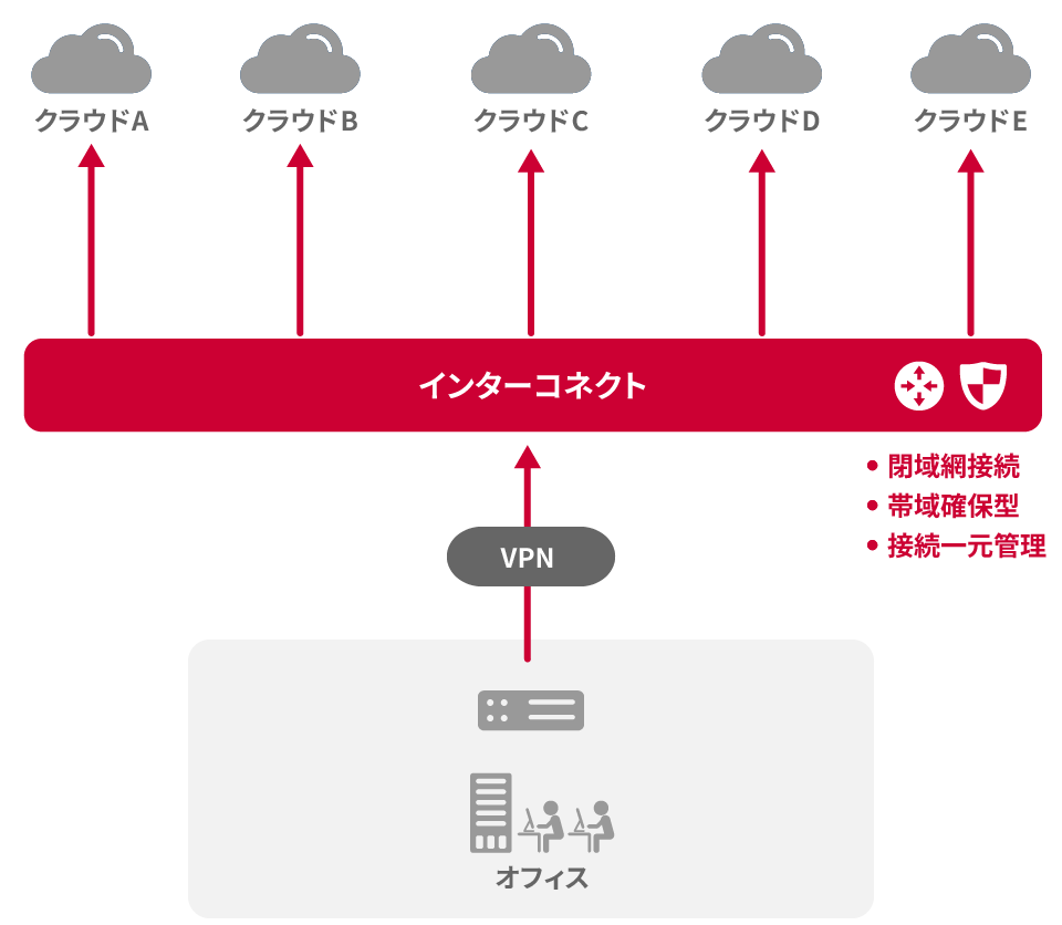 各種クラウドサービスやデータセンターを閉域網経由でセキュアに接続可能。