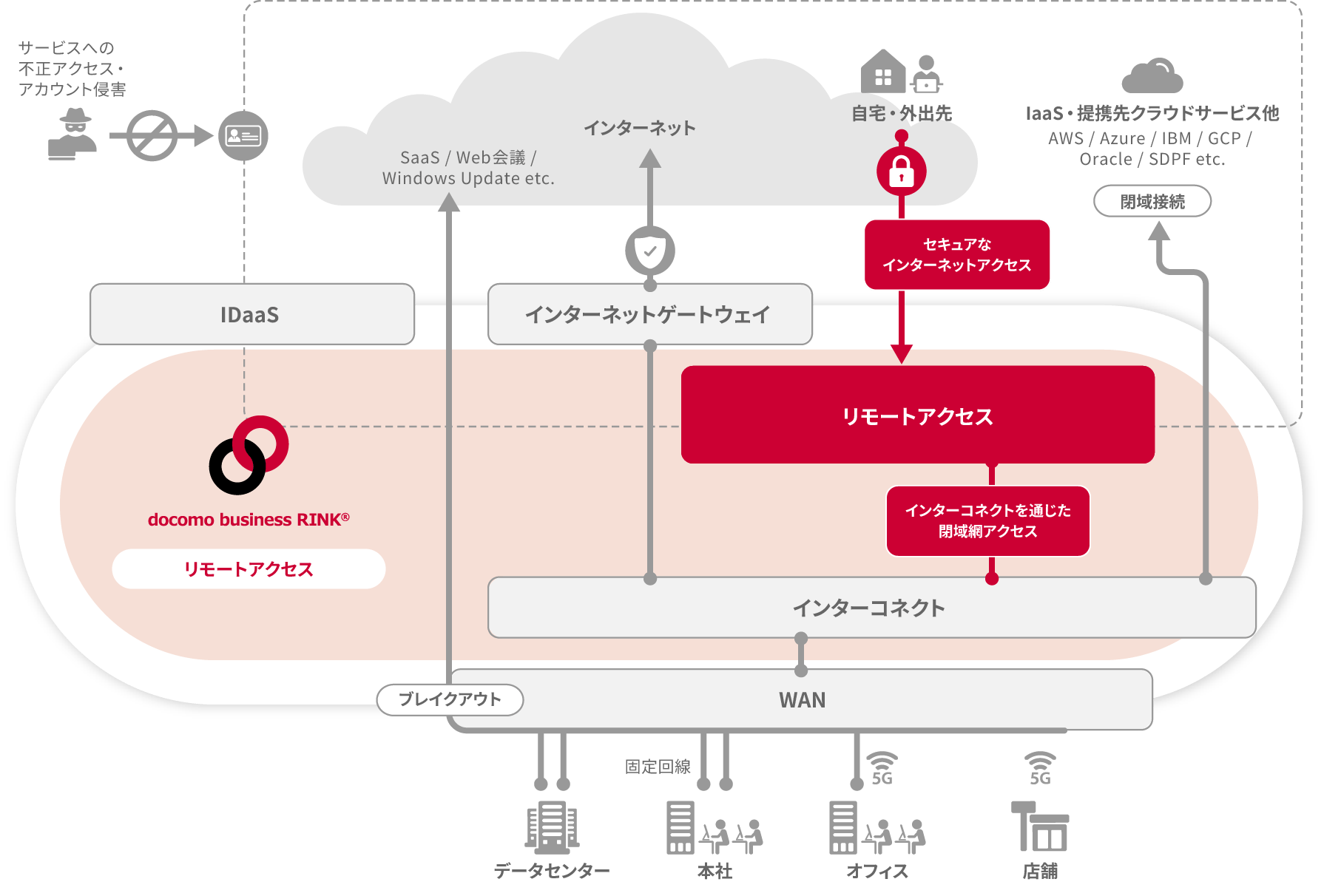 ※「リモートアクセス」は docomo business RINK®のコンポーネントの1つです。「Flexible Remote Access」は単体でのご契約・ご利用も可能です。