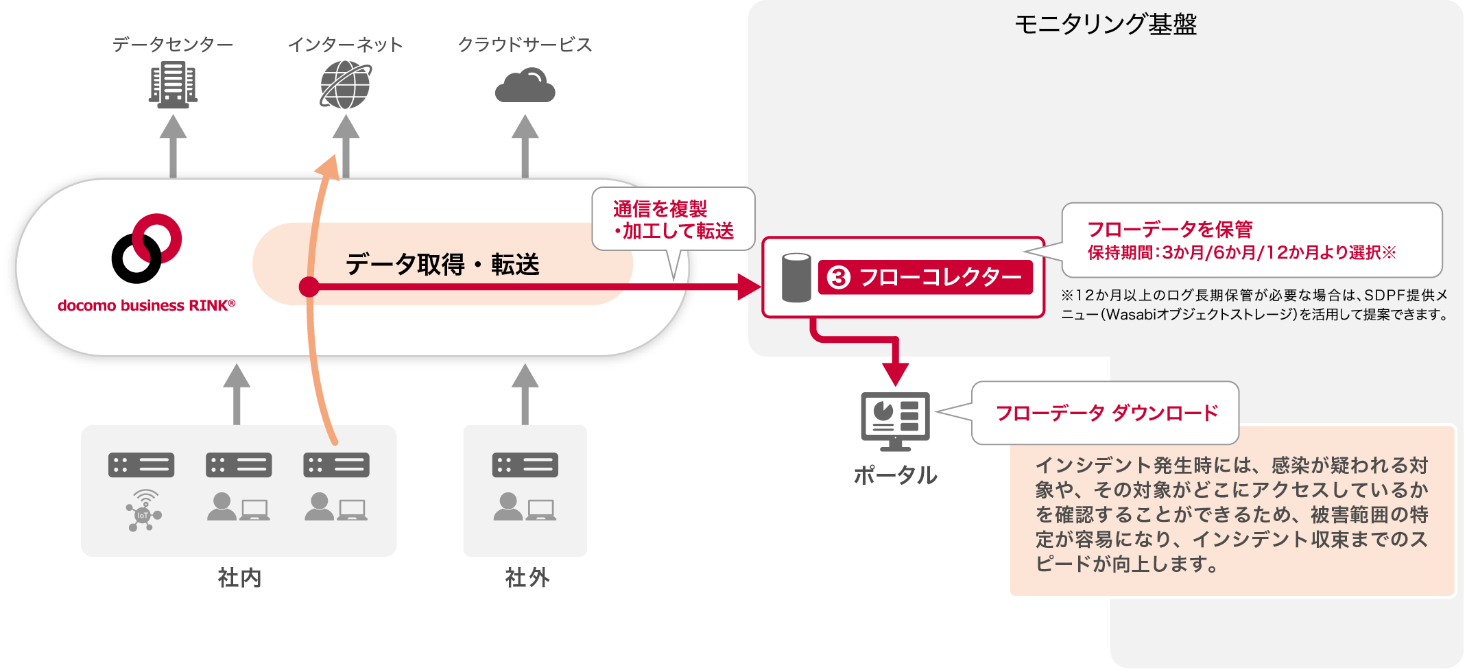 こうした背景の中で、セキュアドWANはネットワーク自体にセキュリティ機能を組み込むことで、セキュリティインシデント発生時の対応の迅速性、サイバー攻撃への対応力の向上に貢献します。