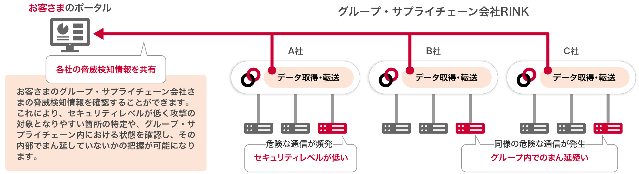 - サプライチェーン内で脅威検知情報を企業間で共有、影響拡大前に迅速な対応が可能