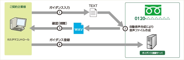 カスタマーコントロールから入力したテキストを音声合成※により音声ファイル化し、効率的にオリジナルガイダンスを作成・登録