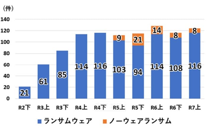 令和7年上半期におけるランサムウェアの被害報告件数は116件