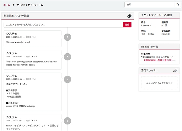 お客さま自身での監視設定や監視状況確認、非監視申請やお問い合わせなどを行うことが可能となります。一部機能は全自動化されており、申請からサービス提供までの時間が従来より大幅に短縮されます。