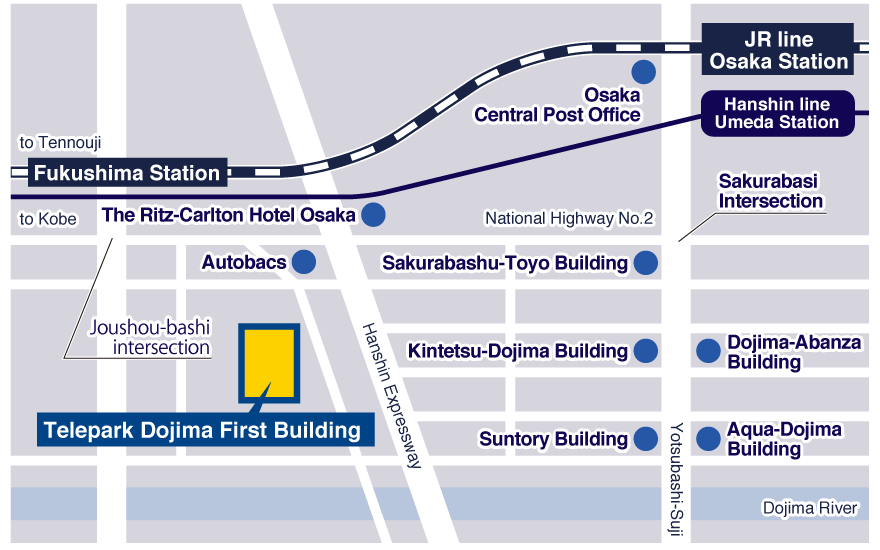 - Umeda Station (Hanshin line), Exit No.17, 10-minute walk