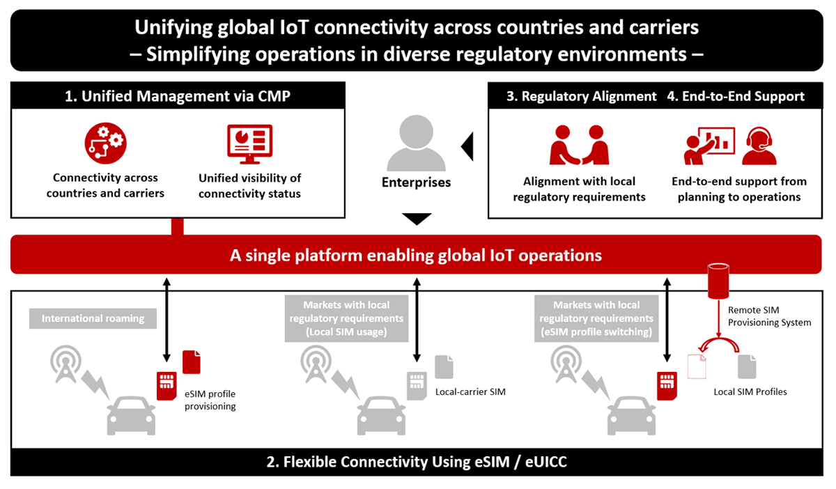 NTT DOCOMO BUSINESS will provide end-to-end support—from planning and implementation through ongoing operations—so customers can deploy and run global IoT services without managing multiple providers or country-by-country adjustments.