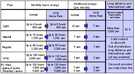 Note 1: The shaded areas show the NTT Communications OCN Home Pack charges.