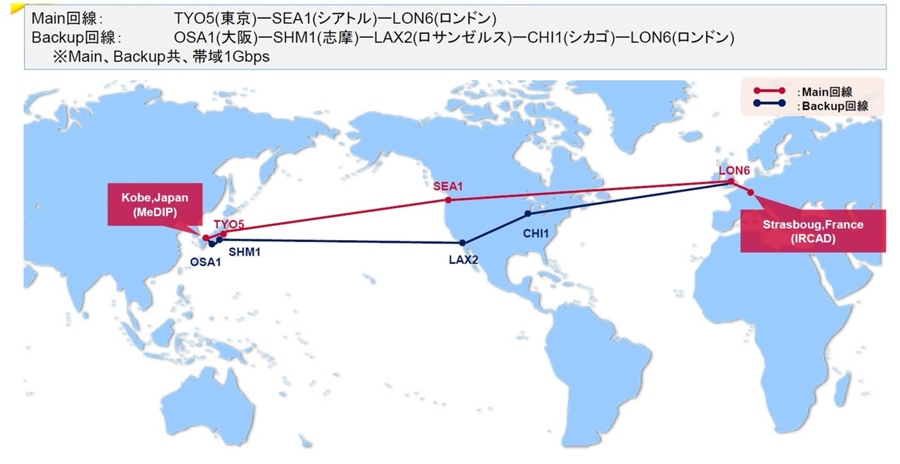 清水:太平洋ルートを軸に、アメリカ、ロンドンを経由してフランス・ストラスブールへ至るメインルートと、バックアップの2回線体制を構築しました。本来であればロシアルートが最短だったのですが、地政学的リスクを考慮し、使用を見送ったのです。