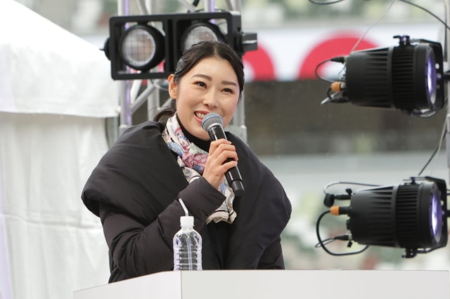 「4月なのにすごく寒かったんですよ。カイロを4つぐらい貼って臨みました」と話す都田さん。