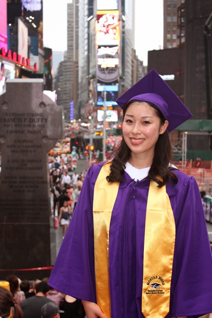 その後、ウィスコンシン州にある本校に進んだが、憧れのニューヨークで学びたくなった。さらに編入するとなれば卒業時点で25歳を超えてしまい、日本のキー局のアナウンサー新卒採用枠(当時は25歳まで)を外れることが分かっていたが、改めて考えると、自分のやりたいことは声を使って人を元気にすることで、それはアナウンサーでなくても実現できる、とニューヨーク市立大学への道を選んだ。